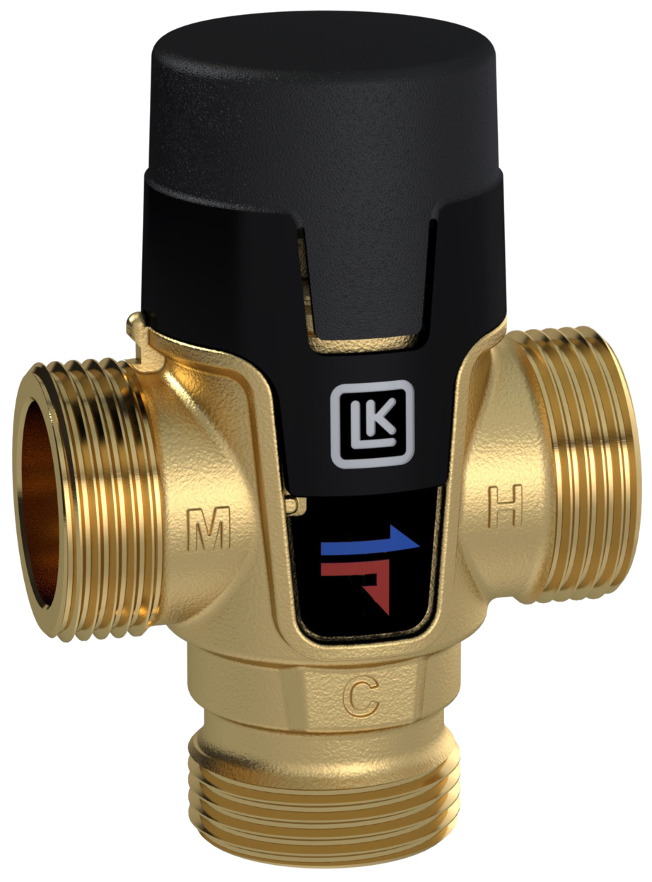 LK 551 HydroMix F är en termisk ställbar fördelningsventil. När vätskans temperatur är högre än den inställda temperaturen på ventilen så fördelas den till port C. När vätskans temperatur är lägre än den inställda temperaturen så fördelas den till port H.