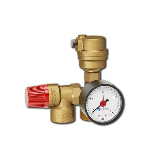 LK 924 / 925 SafetyGroup är en säkerhetsgrupp för värmesystem. Säkerhetsgruppen innehåller en fördelare, manometer, säkerhetsventil och en avluftare. 924 SafetyGroup har en automatisk avluftare med flottör, medan 925 SafetyGroup har en automatisk avluftare med fiberskivor. Fördelaren har två ½”-anslutningar för säkerhetsventilen och t.ex. ett expansionskärl samt en ⅜”-anslutning för avluftaren.